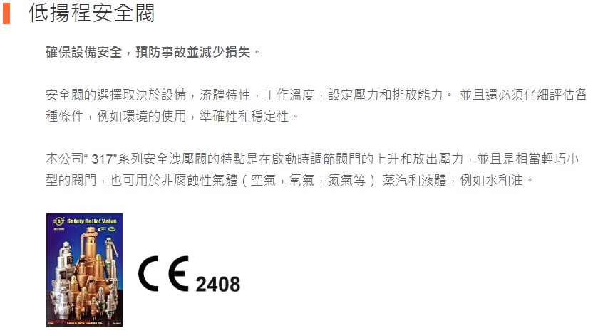 我們很高興地向您介紹317系列安全閥獲得工業安全認證。包括青銅安全閥和不鏽鋼安全閥,依據 EN ISO 4126-1:2013的設計標準製造。(安全閥型號: SV, SV-B, SV-S, SVP-B, SVP-S, SVF, SVPF, SVPF-B, SVPF-S)想更多地了解我們的產品。歡迎與我們聯繫。